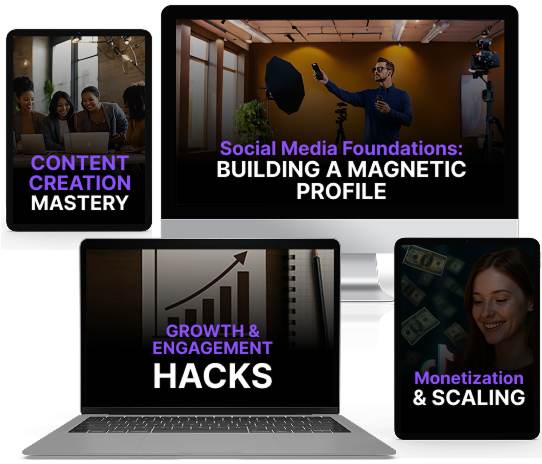In just 90 days, you’ll have a fully optimized social media presence, a content plan that works, and a clear roadmap to monetization.